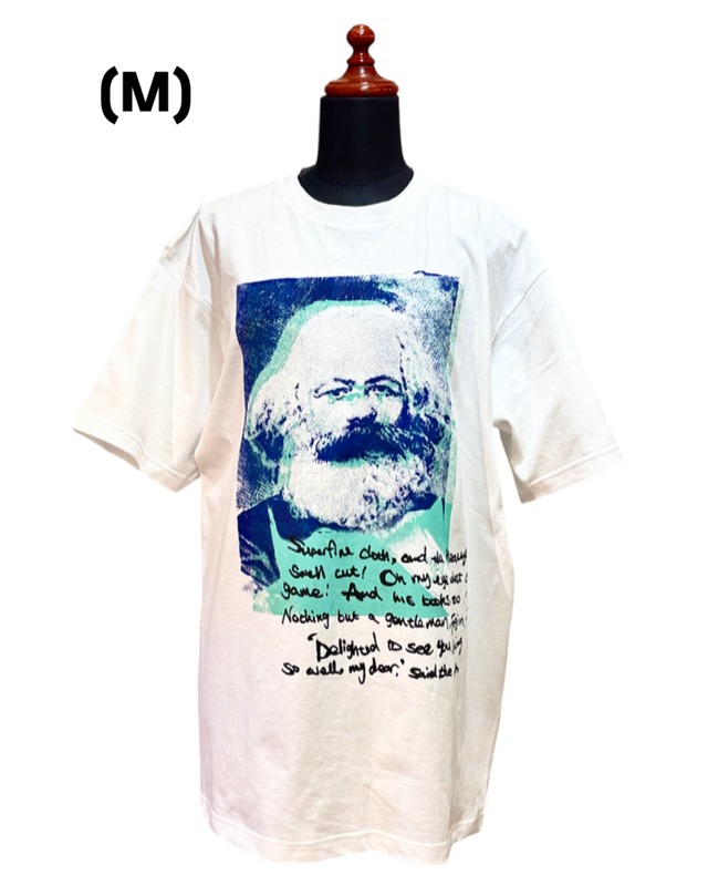 Marx T-shirts White(L) ドイツの哲学者、経済学者、革命家 Karl Marxの T-shirts この度は Mint Green x Navy のカラーコンビで春先に良いカラーで製作致しました。 常に人気の商品です。 是非お見逃しなくご覧くださいませ。 Overseas shipping is possible depending on the country, so please inquire. サイズ L 素材 Cotton 100% オンス 5.6 onz Collour White Print シルクスクリーンプリント size L 肩幅 50cm Bust 106cm 着丈 72cm 袖丈 20cm