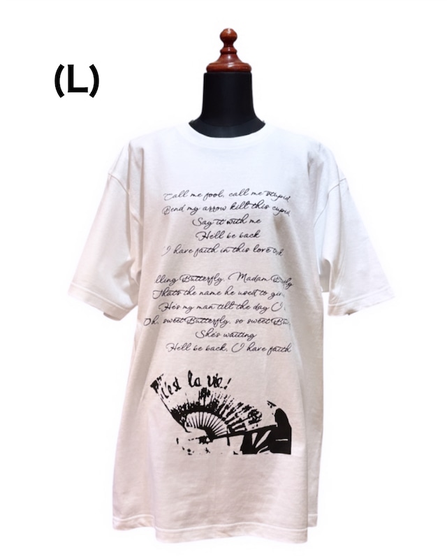 Madam butterfly T-shirts White (XL) Malcolmの重要なパート Opera "Madam butterfly" より歌詞とMalcolmの写真にあるC'est la vieの文字のFan を用いた作品です。 Malcolm追悼商品です。 是非ご覧くださいませ。 Overseas shipping is possible depending on the country, so please inquire. サイズ XL 素材 Cotton 100% オンス 5.6 onz Collour White Print シルクスクリーンプリント size XL 肩幅 53cm Bust 116cm 着丈 78cm 袖丈 24cm