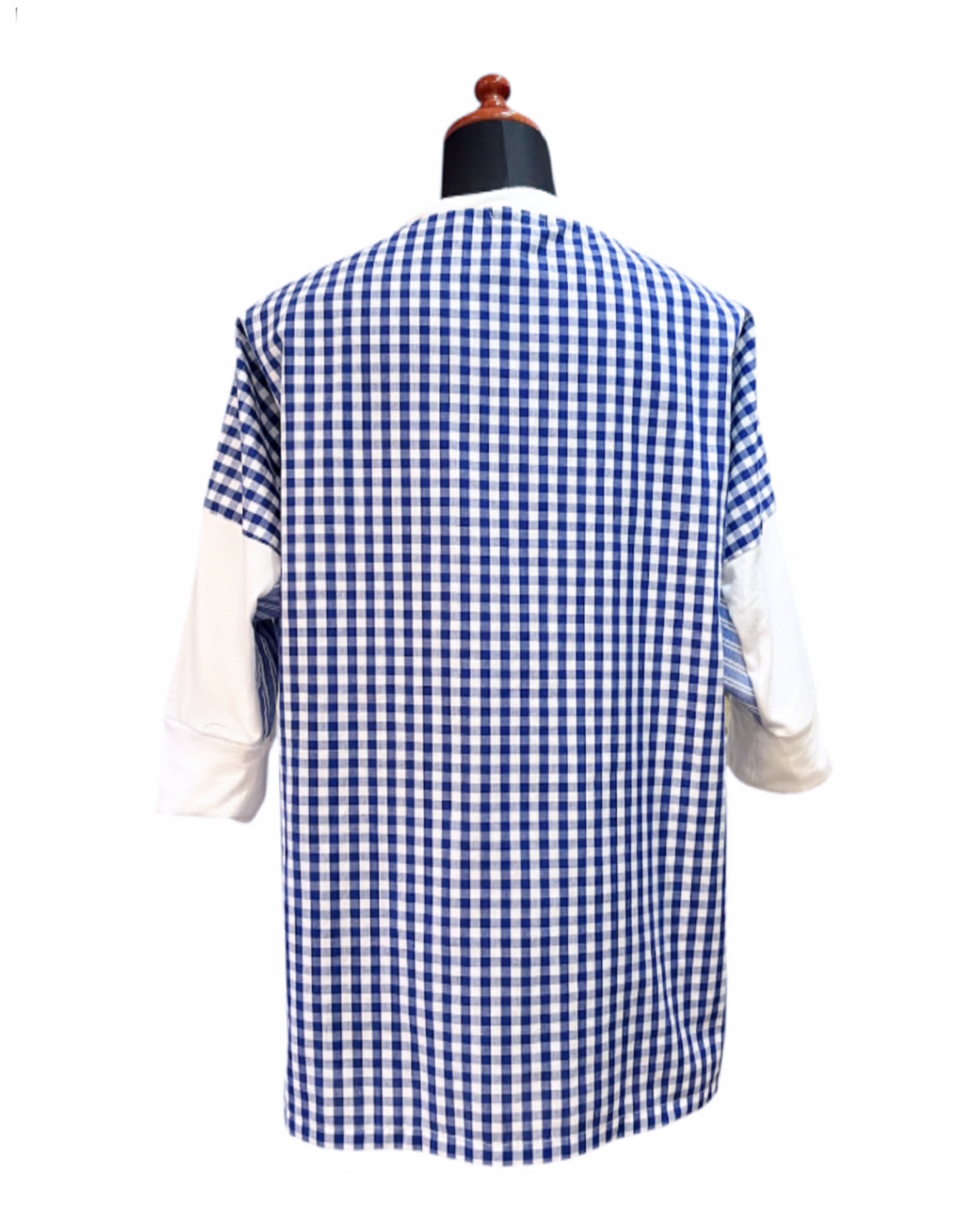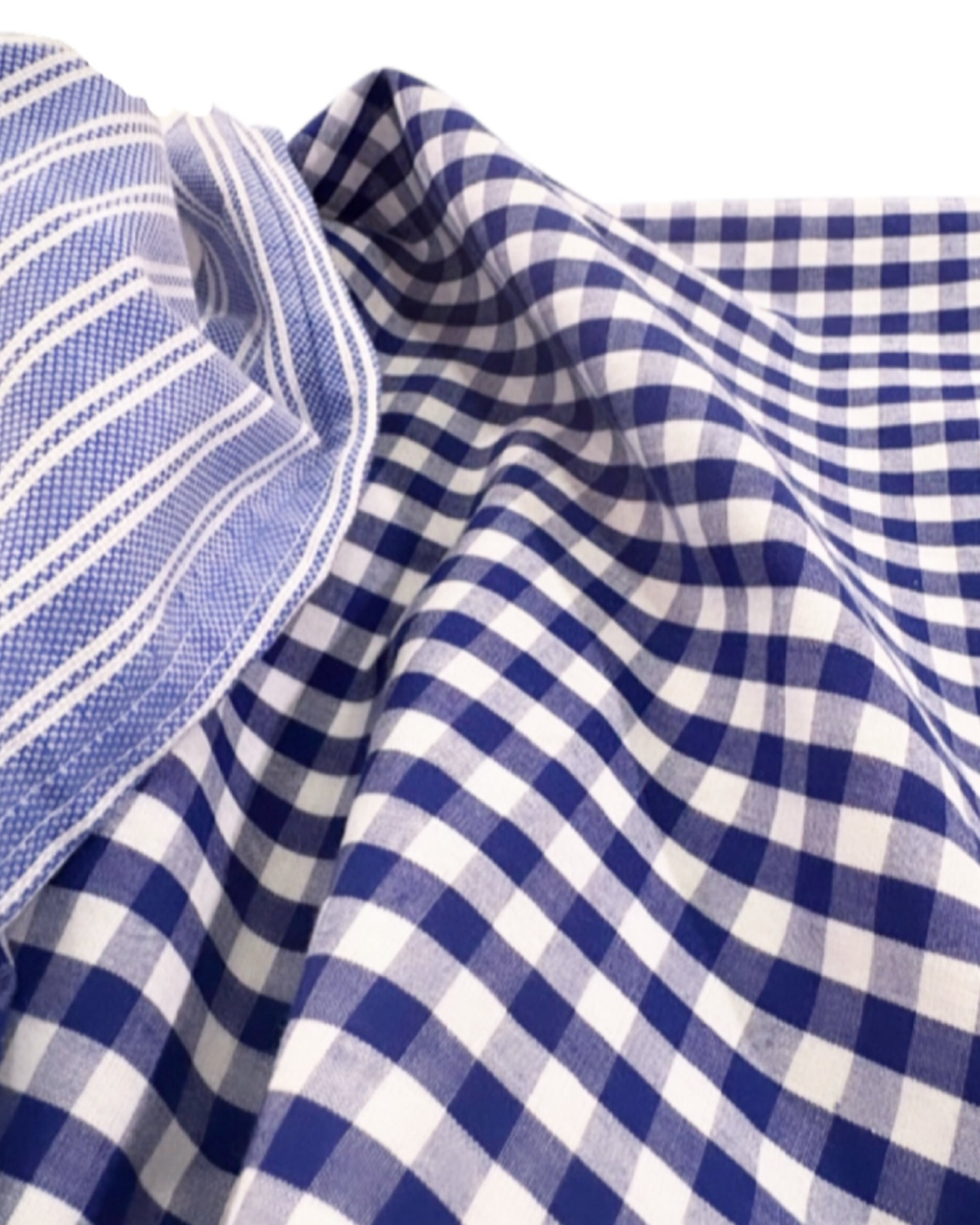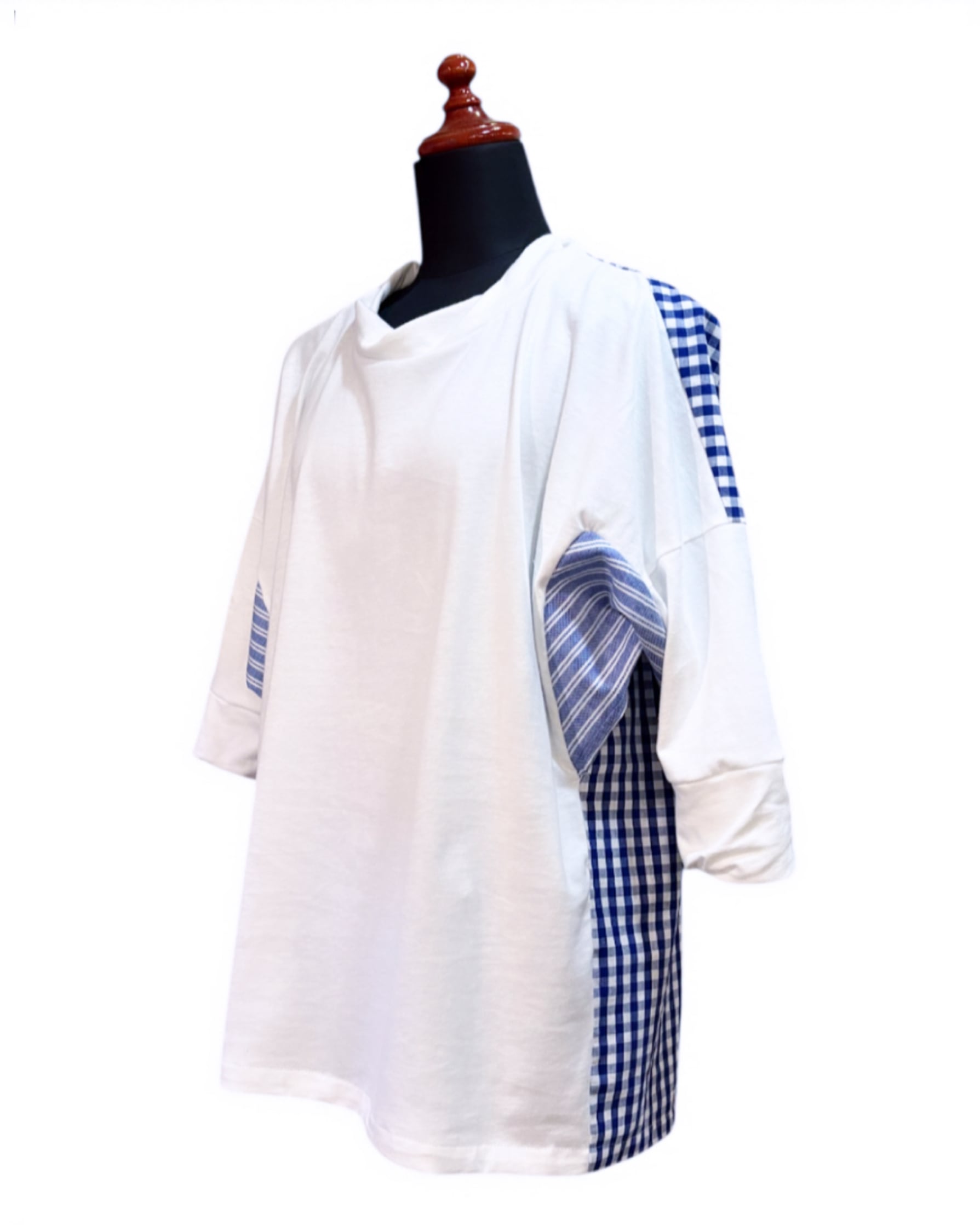 White ベースにBlue gingham, Blue stripe のmix