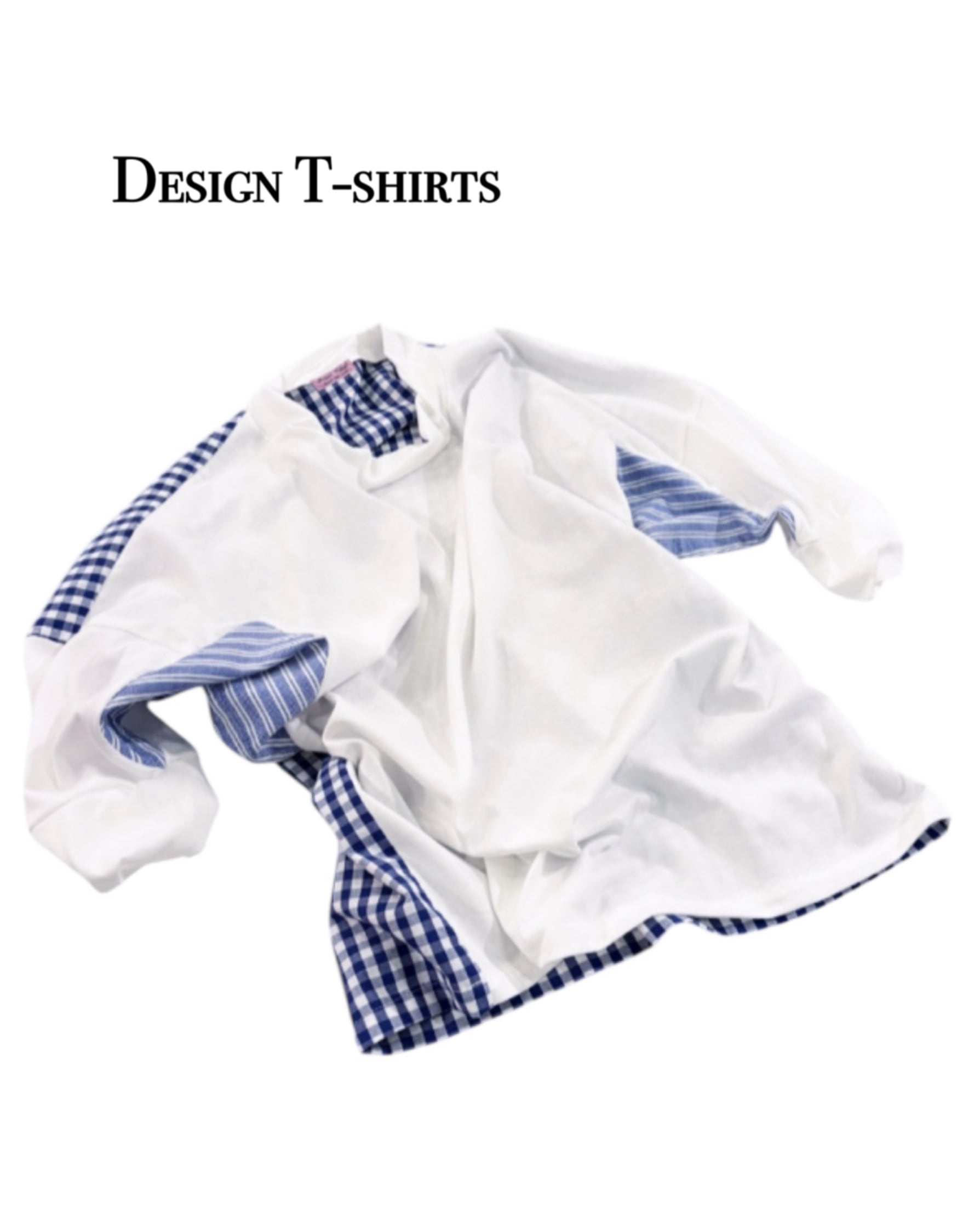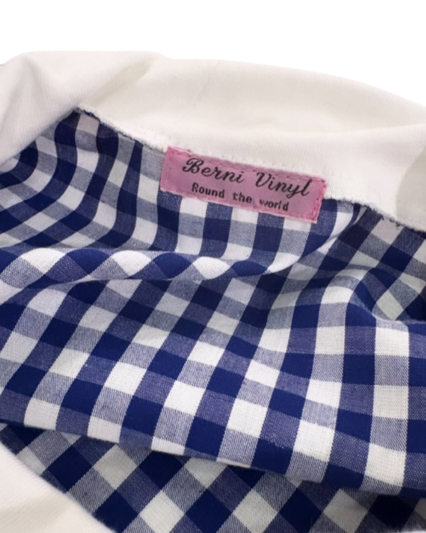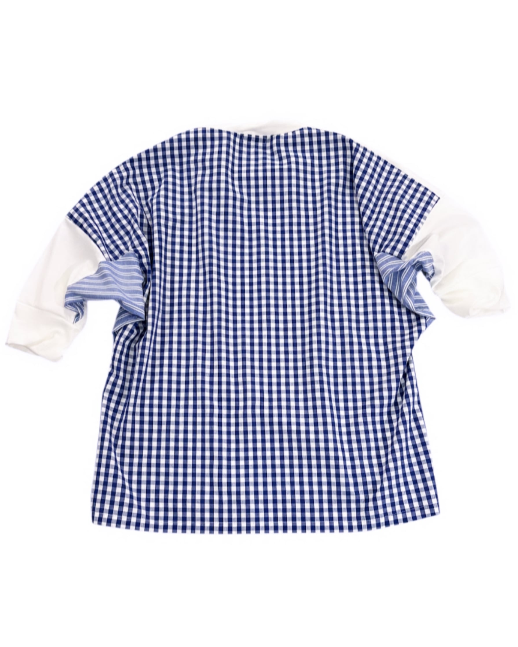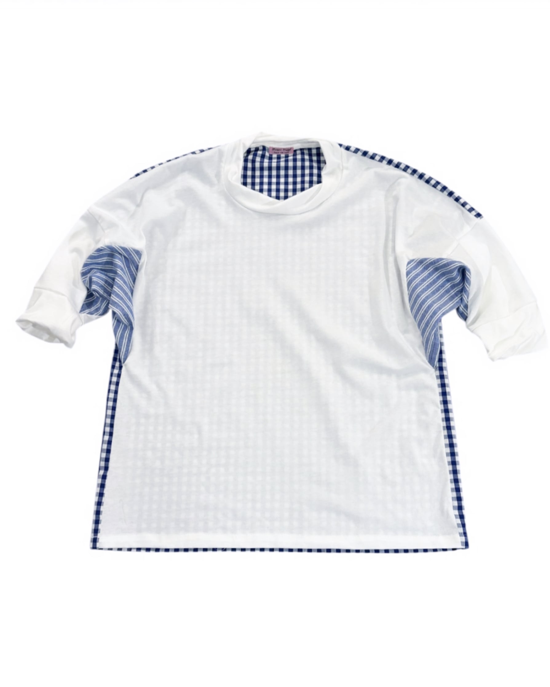 White ベースにBlue gingham, Blue stripe のmix