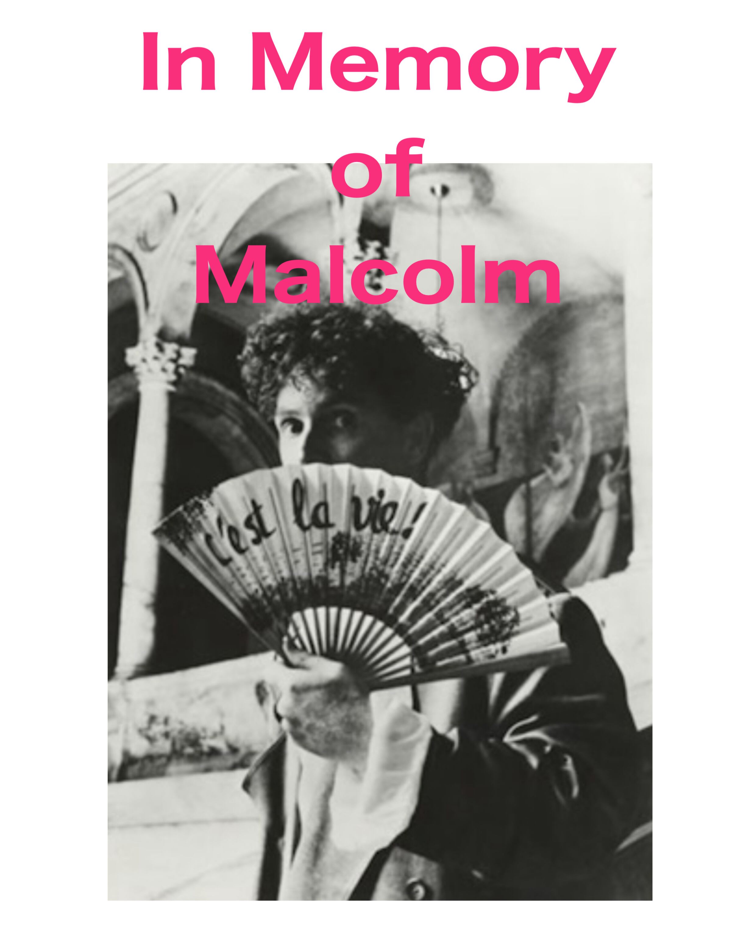 Malcolmの重要なパート Opera "Madam butterfly" より歌詞とMalcolmの写真にあるC'est la vieの文字のFan を用いた作品です。