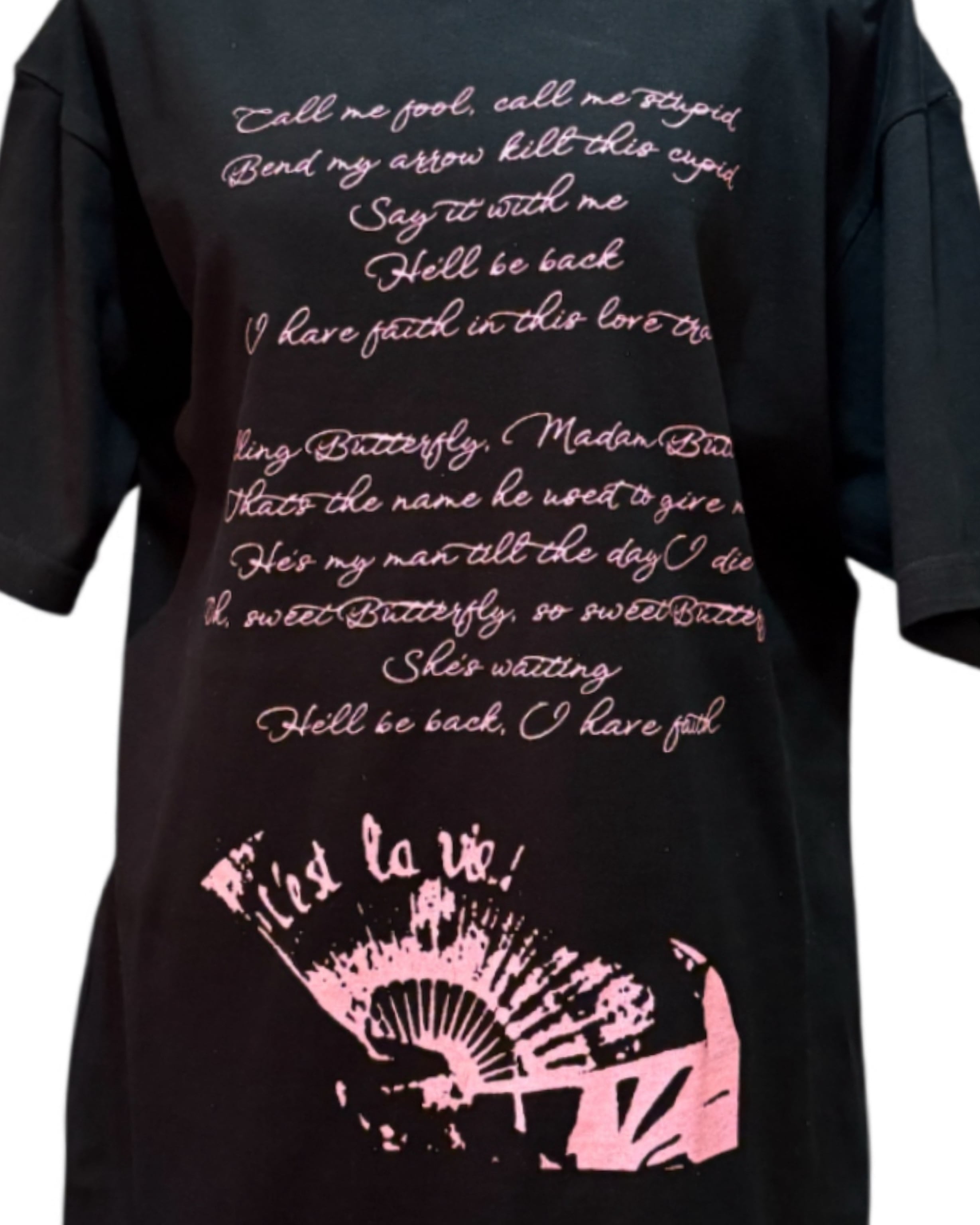 Malcolmの重要なパート Opera "Madam butterfly" より歌詞とMalcolmの写真にあるC'est la vieの文字のFan を用いた作品です。